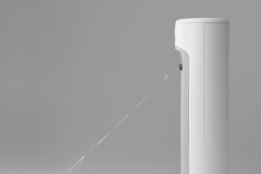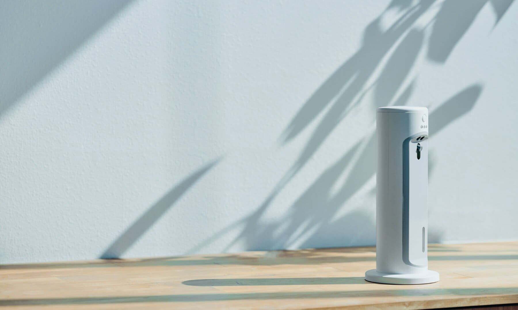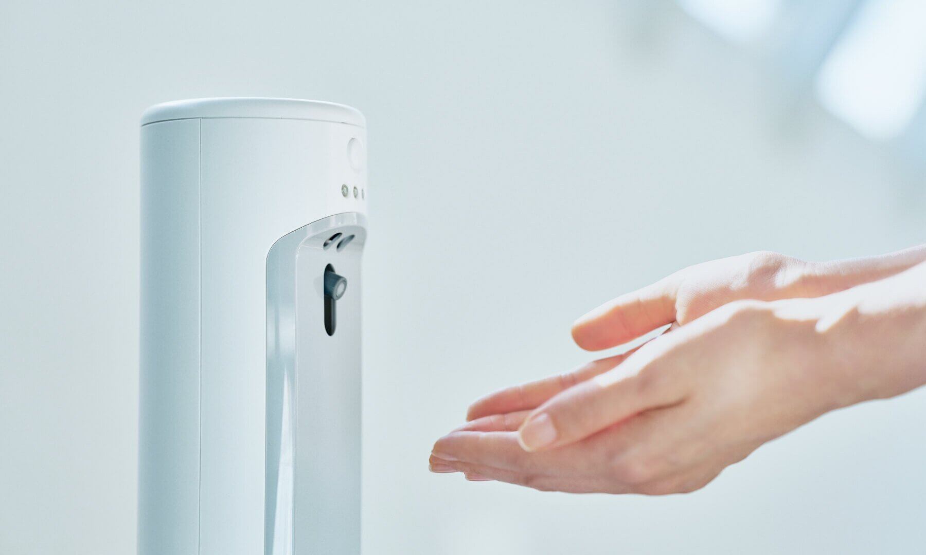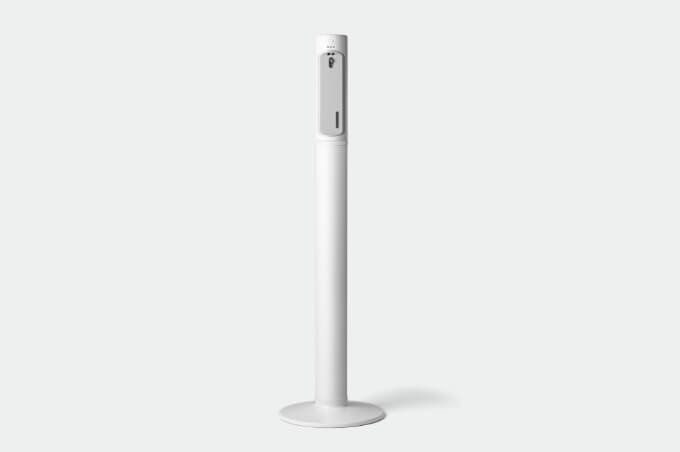 別売の専用スタンドに取り付ければ、どこにでも設置可能。最適な高さで立ったまま消毒できます。
